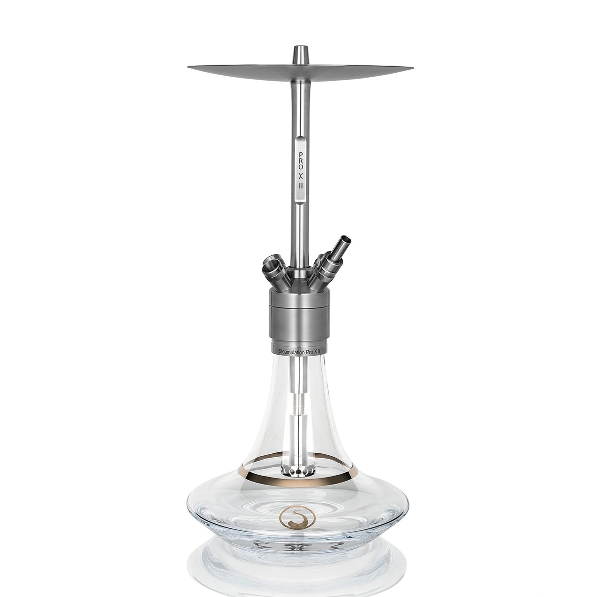 Ici, vous obtenez un narguilé en acier inoxydable V2A de haute qualité, qui se distingue au premier coup d’œil par son look élégant et moderne. Le steamulation Pro X II impressionne par ses fonctions spéciales et ses options de réglage comme la valve Purge-Pro qui permet à quiconque de souffler de la fumée éventée sans avoir à retirer les billes de valve. Ses valves des quatre raccords de tuyauterie fonctionnent automatiquement. De plus, le système intelligent peut compenser la surpression dans le sifflet et, si nécessaire, utiliser les raccords de tuyaux libres pour souffler. Enfin, il impressionne par son tirage agréable et sa longévité à fumer, car aucun air étranger n’est aspiré grâce à l’utilisation de billes de précision. La nouveauté de cette chicha est le nouveau contrôle du tube plongeur. Ce système permet un réglage souple de la longueur du tube plongeur. Vous pouvez aussi choisir entre 9 options de réglage différentes. Le tube plongeur a un diffuseur intégré qui peut être utilisé comme vous le souhaitez : soit en faisant glisser le manchon coulissant du tube plongeur sur les trous (ce qui signifie que le diffuseur n’est plus actif), soit en tirant le manchon vers le haut pour révéler les trous du diffuseur.